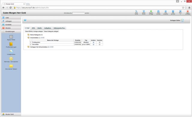 Vorlagen für E-Mail, Fax, SMS, Briefe und Aufgaben
